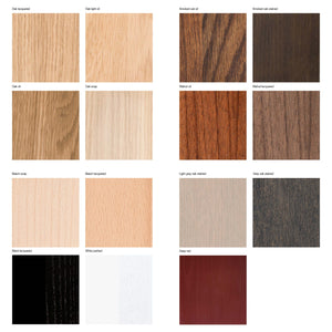 Oak/Soaped, Oak/Oiled, Oak/White Oiled, Oak/Black Lacquered, Oak/Lacquered, Walnut/Lacquered |