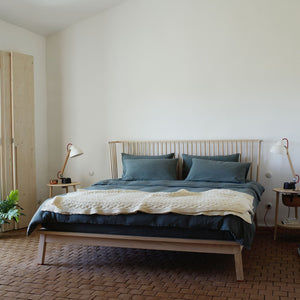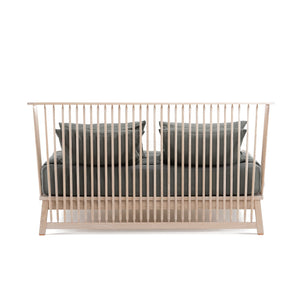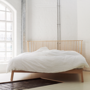 Companions Bed, made from solid wood with copper feet, is reassuringly familiar but carefully detailed. The wraparound headboard has a cocooning effect on the user, and also acts as an attractive room divider, making this bed suitable for use in the centre of a room.