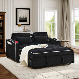 Lunale 3-in-1 Convertible Futon Sofa Bed, Loveseat Sleeper with Phone Stand, USB, Velvet