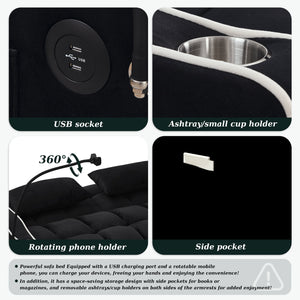 This comfortable and durable sofa bed will be perfect for small spaces and small apartments. The convertible design paired with the adjustable angle backrests makes it easy to convert from loveseat sofa, chaise lounge and bed. Not only can it fulfill your different needs for reading, entertaining and sleeping, but more importantly, you no longer need to worry about the arrival of unwanted guests. The included swivel cell phone holder frees up your hands, while the usb charging port, cup holders and side pockets are thoughtfully designed to bring you more comfort and convenience.