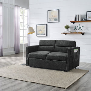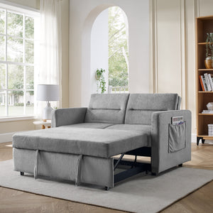 This sofa comes with a pull-out bed that can be easily pulled out with the aid of an auxiliary drawstring, seamlessly converting the sofa bed into a chaise or sleeper bed. This convertible sofa bed is the perfect solution for small space living rooms and bedrooms. It's great whether you're using it by yourself, with your family or entertaining overnight guests. The surface is made of high quality soft velvet material, smooth and comfortable.3-stage adjustable backrest allows you to find the best relaxation position.2 large side pockets for easy storage of TV remote, cell phone, magazines, keys and other items.