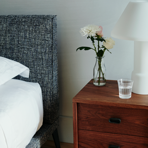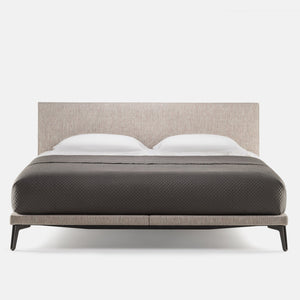 McQueen Bed is strong, elegant, and down-to-earth with its luxurious yet understated upholstered body set upon cast iron legs. Originally launched in 2011, the bed was reissued in 2016 with a taller headboard. This bed has beautiful detailing throughout.