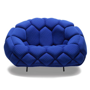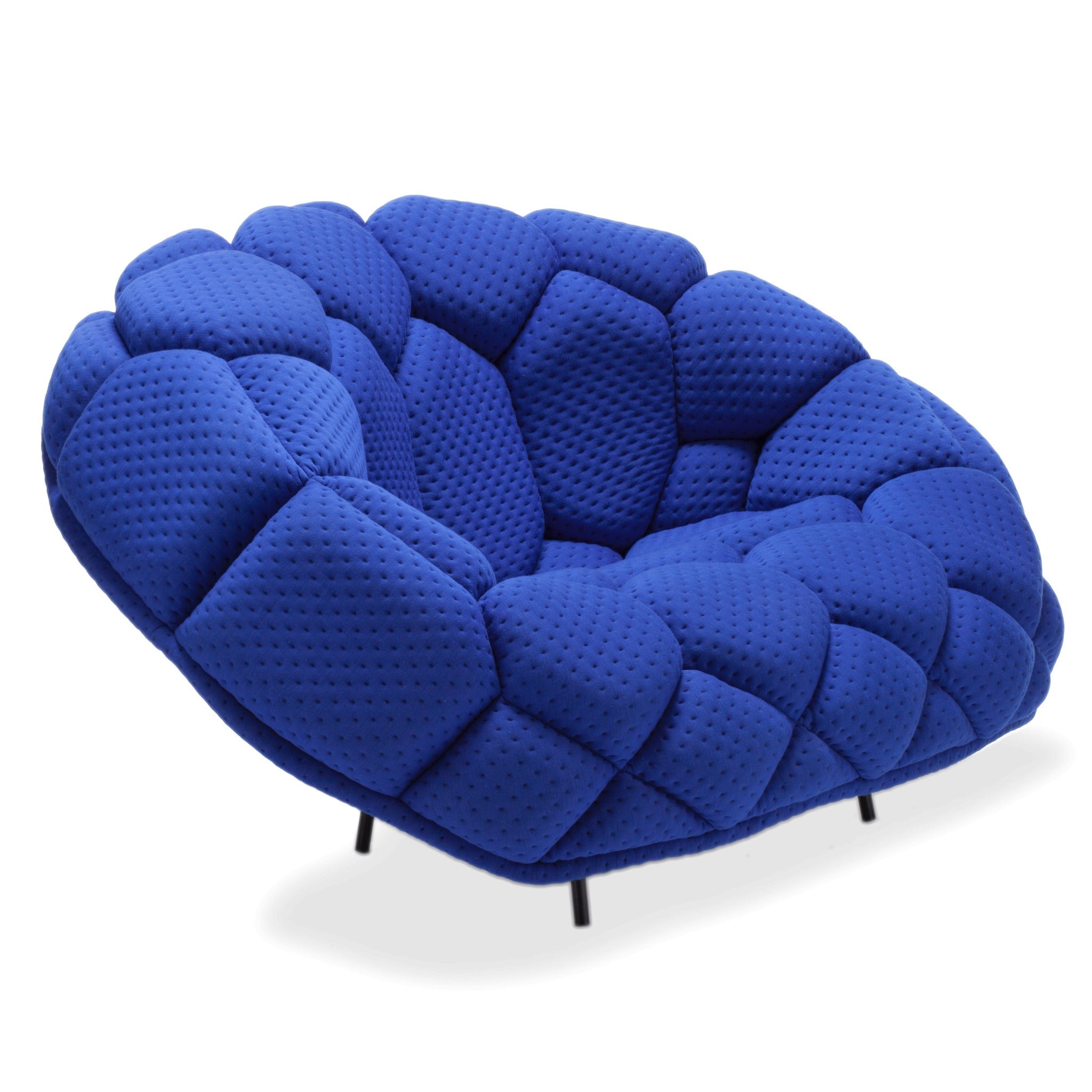 The generously-proportioned Quilt seating series by the Bouroullecs is covered with honeycomb-like, plump upholstery in bright, stretch fabrics for an instant colour hit in both residential and contract settings.